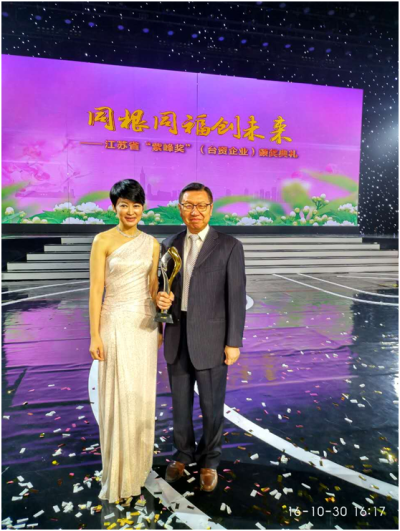 经国务院批准,江苏省政府专门设立目前大陆各省市中首个面向台资企业的表彰奖项"紫峰奖"。该奖根据江苏台资企业特点,聘请了专门机构制定科学有效的评价体系,设立了五大类别奖项,对扎根江苏、表现突出的台资企业进行了表彰,继续支持台资企业转型升级、做大做强,进一步扩大深化苏台各领域交流合作,努力让合作成果惠及两地人民。可成科技等10家企业荣获"纳税贡献领军企业"奖,仁宝电脑集团等10家企业荣获"出口贸易领军企业"奖,大陆首家台资法人银行永丰银行(中国)有限公司等4家企业荣获"现代服务业领军企业"奖,以海门慧聚药业有限公司领衔的30家企业荣获"成长型企业"奖,昆山超绿光电有限公司等10家企业荣获"青年创业企业"奖。