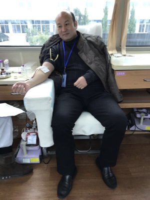 “小汤,今天你又来啦,这次可不能再晕倒喔”,正坐在椅子上采血的我见到本部门的小汤进来检查血样就与他开玩笑,小汤也不示弱“去年是第一次,没有经验,现在让我站着献也没事”,小汤躺下身子继续说“我比较胖,今天抽400CC”,接近目标时,小汤的额头上渗出了些许汗珠,医生见状,忙问“觉得不舒服吗”,小汤坚定回答:“没事,抽到400CC”。